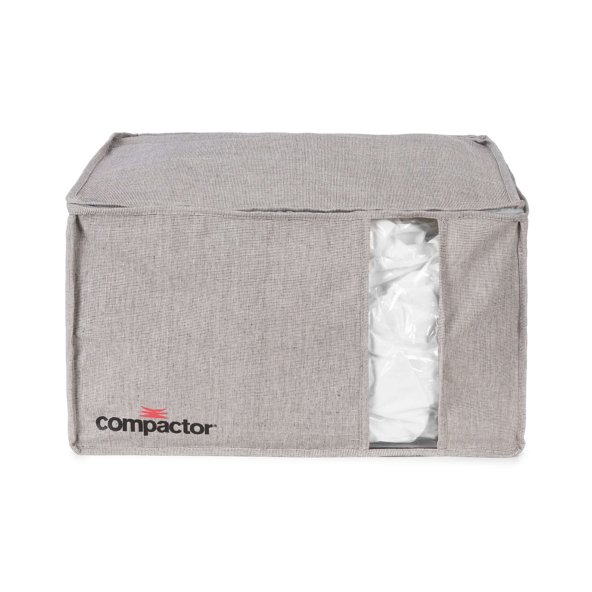 Trois tailles sont disponibles pour répondre précisément à vos besoins : la taille M (36 x 42 x H. 33 cm) est idéale pour ranger une couette deux personnes, la taille L (56 x 56 x H. 16,5 cm) convient pour une couette deux personnes et une couette une personne, et la taille XL (56 x 42 x H. 33 cm) est conçue pour contenir deux couettes deux personnes et une couette une personne.