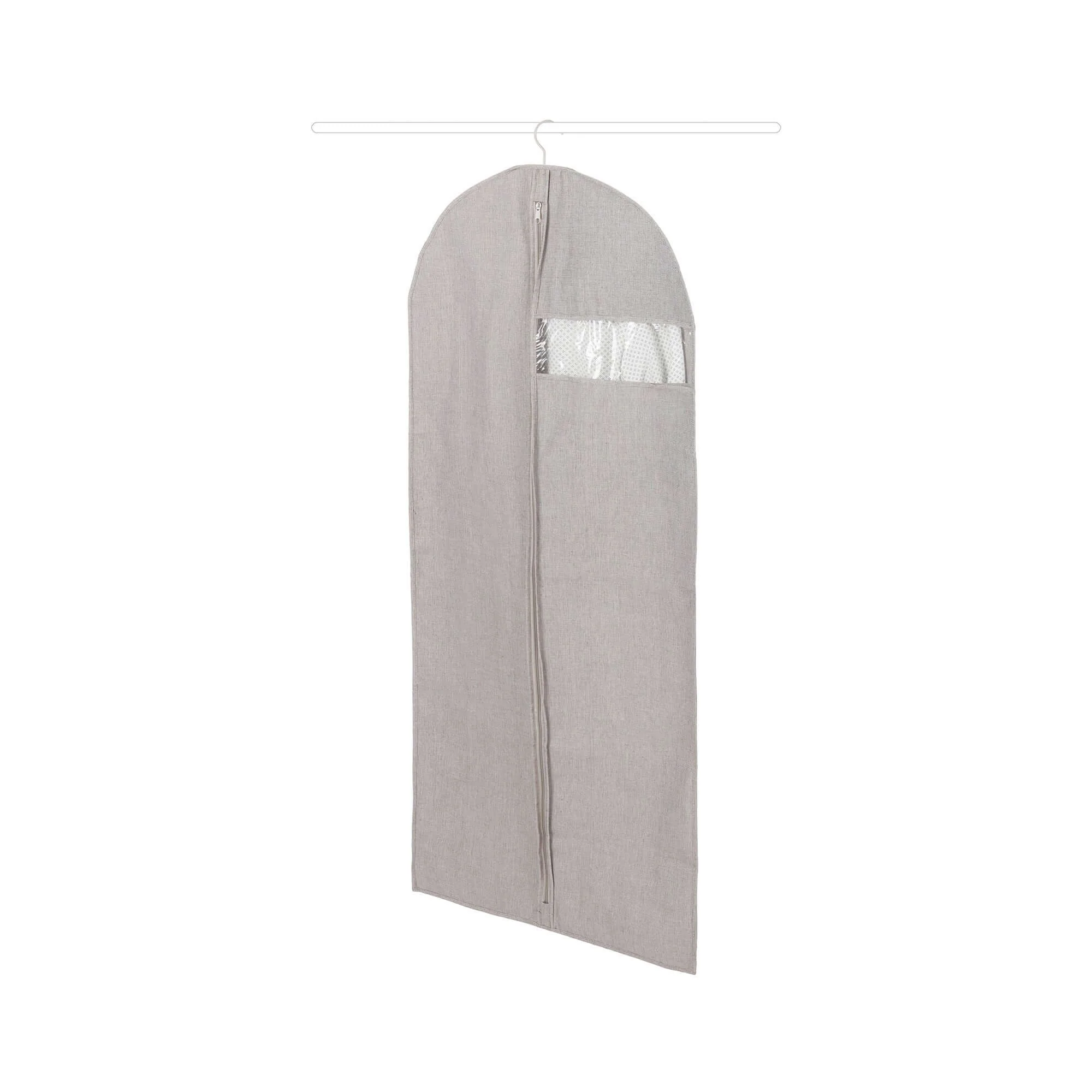 Rangez vos manteaux, robes et pantalons à l’abri de la poussière et de la lumière dans cette belle housse Oxford en toile chinée 70 % polyester, 30 % coton. Le coloris gris taupe est particulièrement raffiné. Facile à accrocher sur la barre de penderie au moyen d’un cintre (non fourni), elle sera du plus bel effet dans vos placards et vous permettra de transporter vos vêtements en voyage ou au pressing en toute discrétion. Grâce à la fenêtre en PEVA transparent, vous repérerez facilement ce que vous avez rangé. Ses dimensions 60 X H. 135 cm sont prévues pour les vêtements un peu longs type manteaux ou robes.